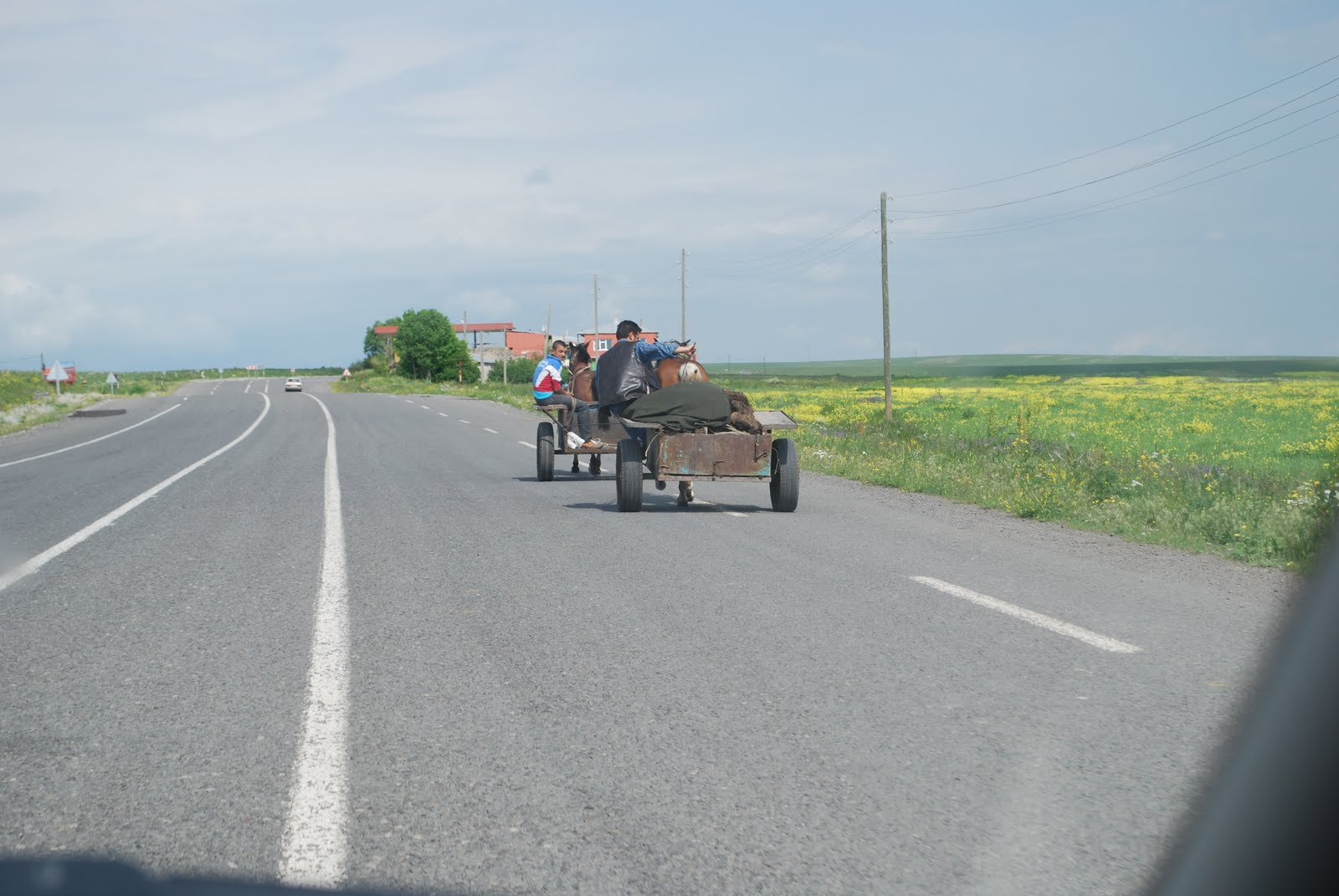 This was at the turn off from the main road on our way to Oguzlu. I made a mental note of it, I told myself to remember to tell the taxi driver to stop here on the way back to Kars. This patch of wild flowers was so beautiful and as soon as we turned back on the main road, we saw these donkey carts. It's been an incredible drive out to the grassland to see the church at Oguzlu. I love Eastern Turkey.